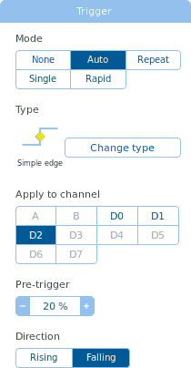 Come analizzatore di stati logici utilizzeremo Picoscope 2205A-MSO (Mixed Signal Oscilloscope) strumento dotato di due ingressi analogici (canali A e B) e 16 ingressi digitali (da D0 a D15). Il software usato è la versione 7.0.121 , l'ultima disponibile nel momento della prima stesura di questa pagina.