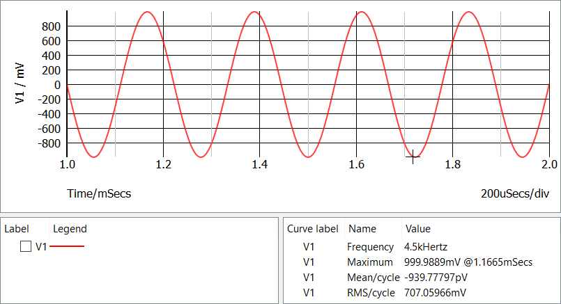 valore massimo della tensione massima VMAX è 1 V (1 000 mV,