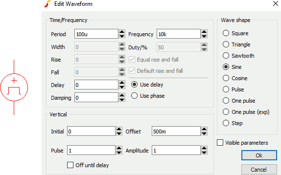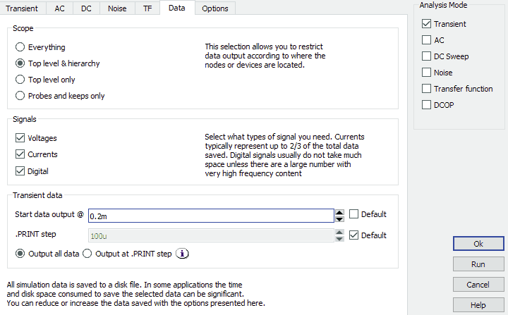 La modalità più semplice per simulare un circuito è Transient,
