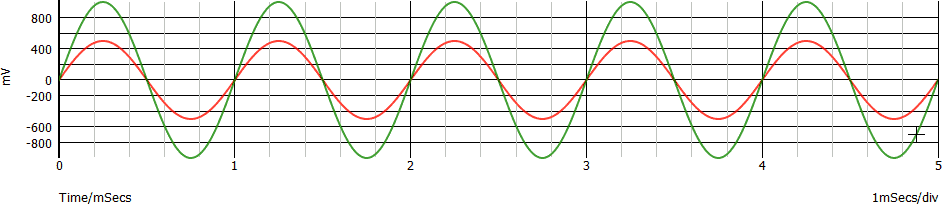 - osservare che i due segnali hanno la stessa forma (sinusoidale) e