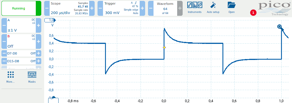 all'uscita del generatore di funzioni del Picoscope, senza inserire alcun