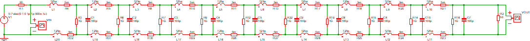 Il primo modello, molto poco accurato, descrive una linea di trasmissione con sei componenti. Un esempio è il seguente: