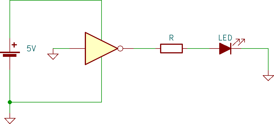- collegare l'ingresso dell'inverter a Vcc: l'uscita è bassa e il LED