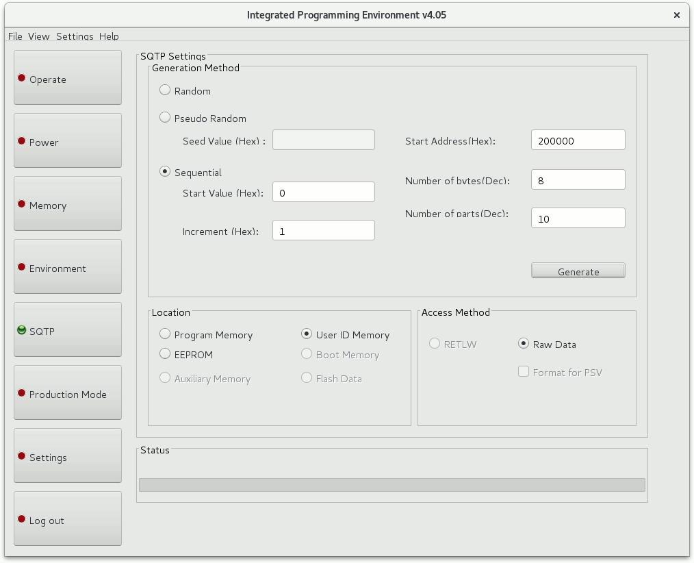 Per utilizzare il file occorre caricarlo in MPLAB IPE prima di programmare i dispositivi: File→ Import → SQTP