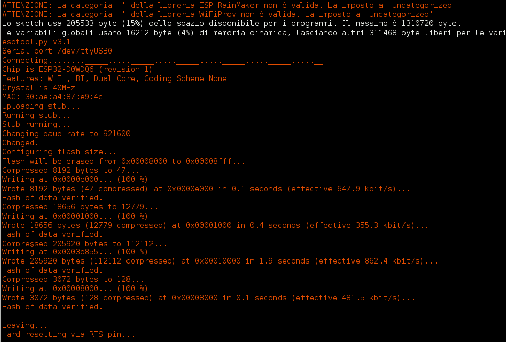 Compilazione e programmazione si fanno con le medesime procedure di Arduino.