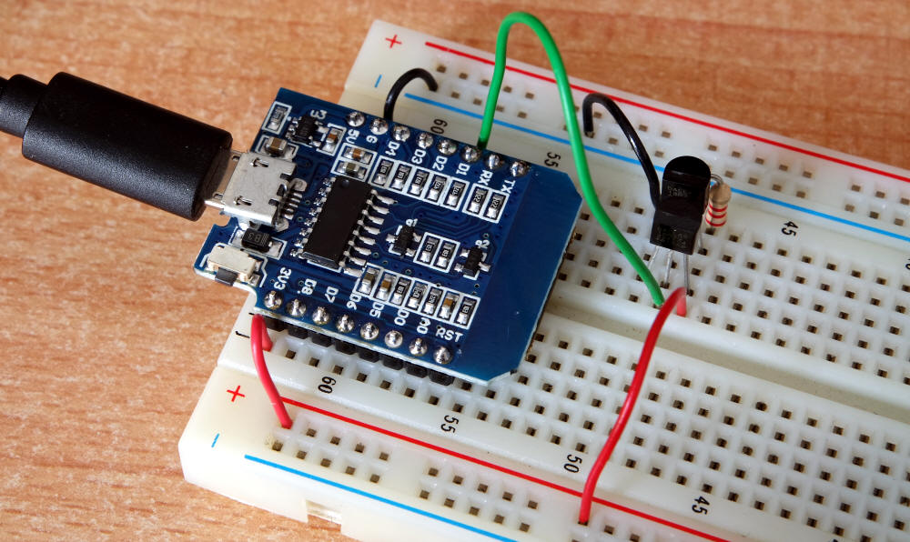 Il filo verde nella fotografia seguente (connesso fisicamente al pin D1) ha la funzione di clock del bus I2C; esso è visto dal software come GPIO5 ed il codice che lo utilizza è quindi, per esempio, digitalWrite(5, HIGH);