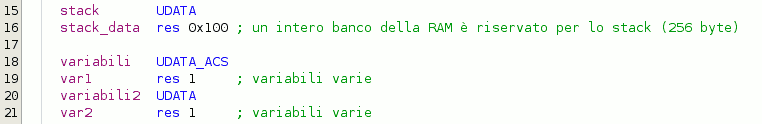 - (righe 15-16) Riservare lo spazio necessario allo stack e alle