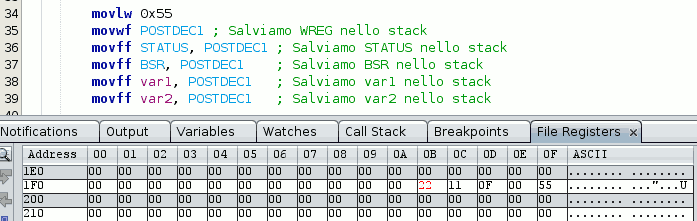 Per realizzare il cosiddetto stack software il PIC18 utilizza uno dei tre registri FSR, in genere il