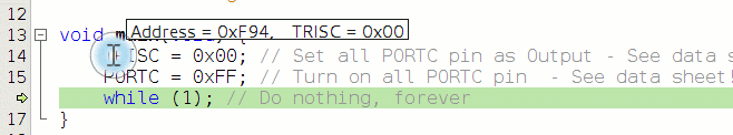 PORTC = 0xFF; // 0b11111111 - Turn on all PORTC pin