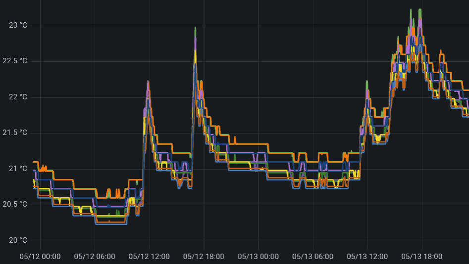 L'immagine seguente mostra una decina di sensori di temperatura LM75A posti nello stesso luogo. Le differenze tra le varie misure (cioè la riproducibilità) sono inferiori a ±0,25 °C rispetto al valor medio. Questo non significa che la misura sia accurata entro ±0,25 °C...