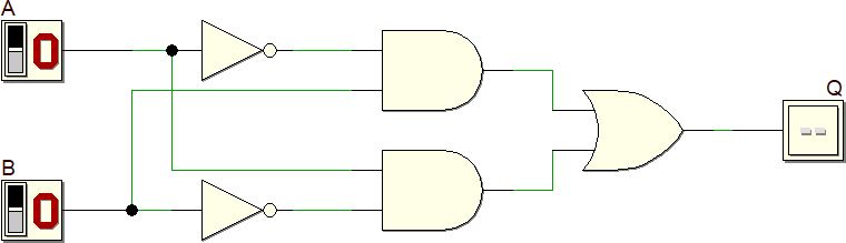 Una possibile descrizione sintetica: l'uscita Q vale 1 quando i due ingressi A e B sono diversi.