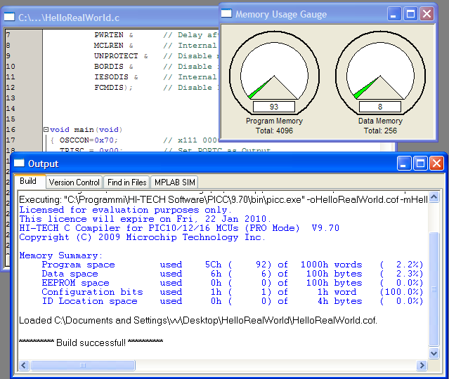 Da tenere sempre sotto'occhio le finestre che mostrano le risorse disponibili sul micro: sono poche, ogni byte è importante!