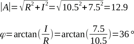 Un numero complesso può essere rappresentato in forma grafica. Utilizzando lo stesso numero di esempio ( A = 10.5 + 7.5j )