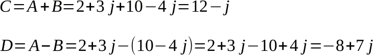 Come per tutti i numeri, dobbiamo capire come eseguire le quattro operazioni (nota 2). Come linea generale, è sufficiente trattare un numero complesso come un binomio e seguire le solite regole dell'algebra. Vediamo qualche esempio relativi ai due numeri: