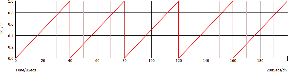 Consideriamo un segnale a denti di sega (nota 7) con frequenza pari a 25 kHz, cioè con periodo di 40 µs. Il nome deriva, come facilmente intuibile, dalla forma che il segnale assume nel dominio del tempo: