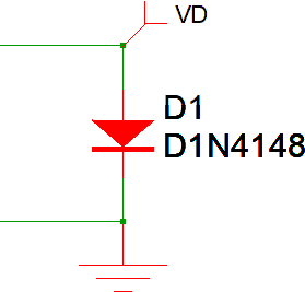 La figura seguente mostra come misurare la tensione tra anodo e catodo di D1, in modo analogo a quanto mostrato nel paragrafo precedente: