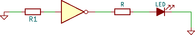 Simulare il seguente circuito, analogo a quello presente nella pagina principi di Kirchhoff: laboratorio. Utile scrivere le equazioni alle maglie e al nodo sia quando l'ingresso dell'inverter è basso, sia quando è alto.