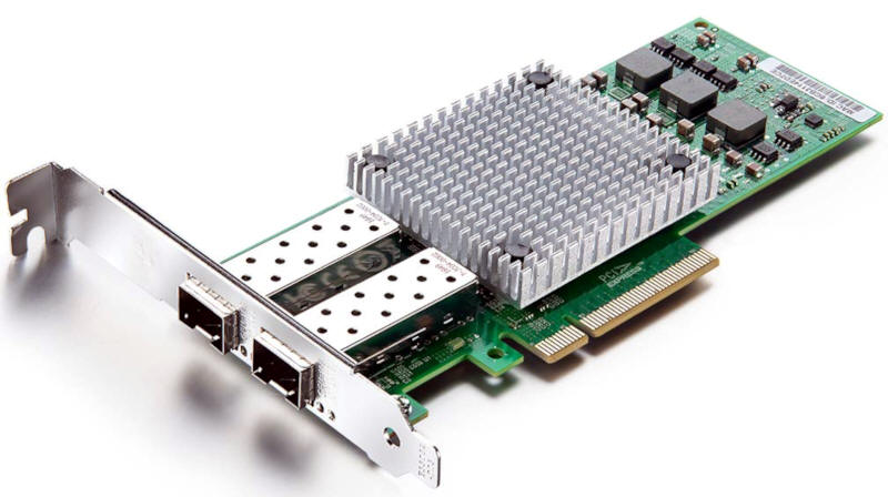 L'immagine seguente mostra una scheda di rete che può ospitare due moduli SFP+.
