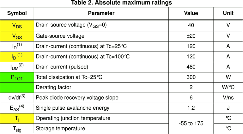 produttore come Power MOSFET N-channel 40 V, 0.0043 Ω typ, 120 A.
