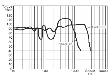Si noti come, soprattutto nel funzionamento a passo intero, la coppia subisca marcate diminuzioni in corrispondenza di frequenze medio-basse; in particolare possono essere presenti alcuni punti in cui la coppia subisce una diminuzione tale che il motore, spontaneamente, si ferma.