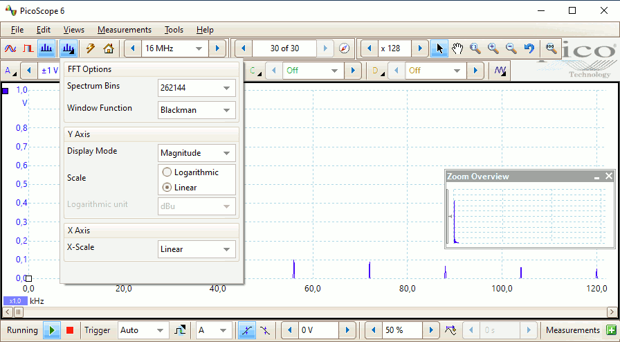 In questa pagina utilizzeremo un Picoscope 3405A prodotto da Pico Technology ed il software Picoscope v 6.x, l'ultimo disponibile nel momento della prima stesura di questa pagina. Una versione più aggiornata è disponibile alla pagina Laboratorio: spettro di un segnale